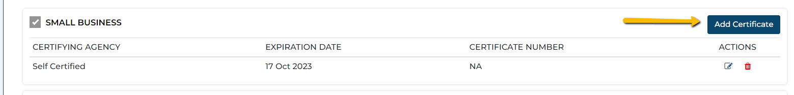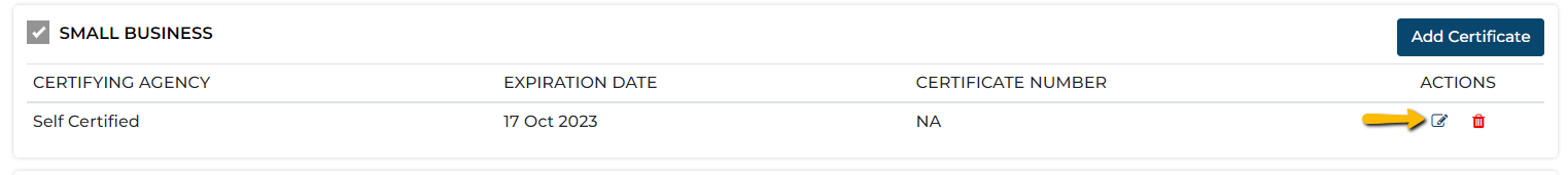 1. Click on the 'Edit' icon next to the certification you wish to modify.