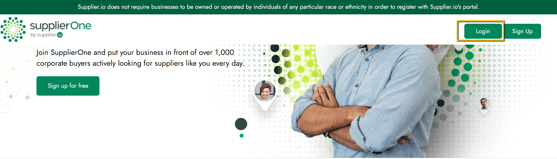 1. Go to https://supplierone.co and click the Login button found on the upper right-hand side.